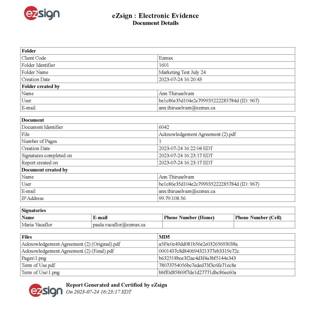When the proof of evidence file provides this level of detail, it satisfies the requirements provided by Canadian legislation, regulation, and case law for authentic electronic signatures.