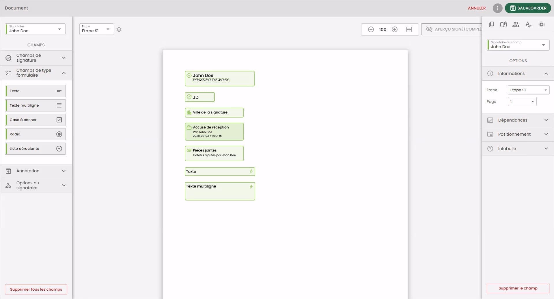 Les blocs de signatures ont été harmonisés pour offrir une expérience plus cohérente. Cette amélioration assure une mise en page uniforme, facilitant ainsi la lecture et la validation des documents signés.