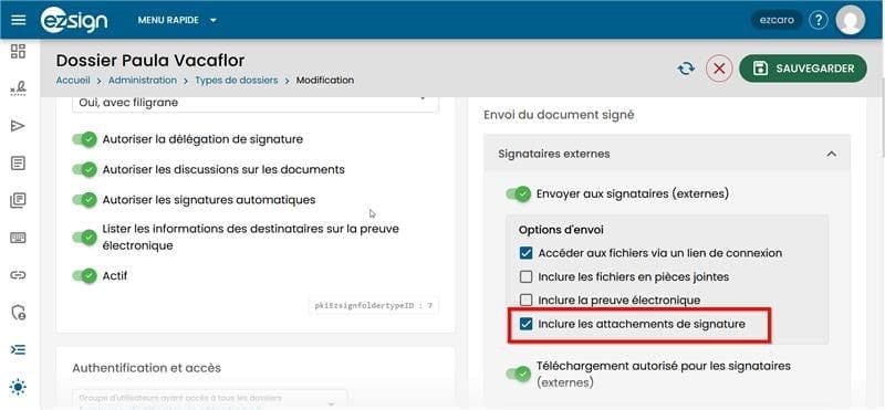 Il est à noter que cette option est désactivée par défaut et doit être activée par type de dossier.
