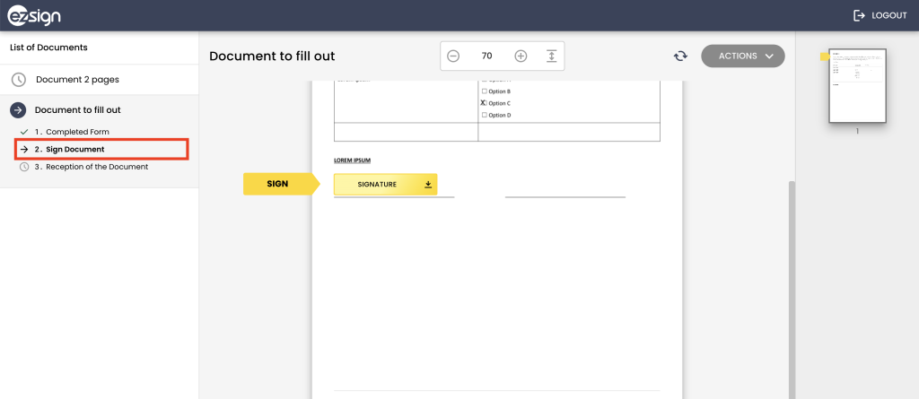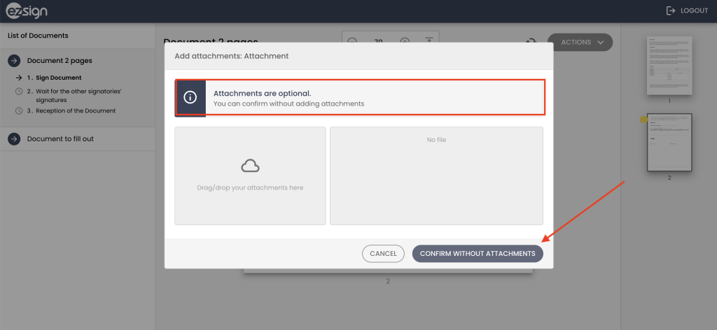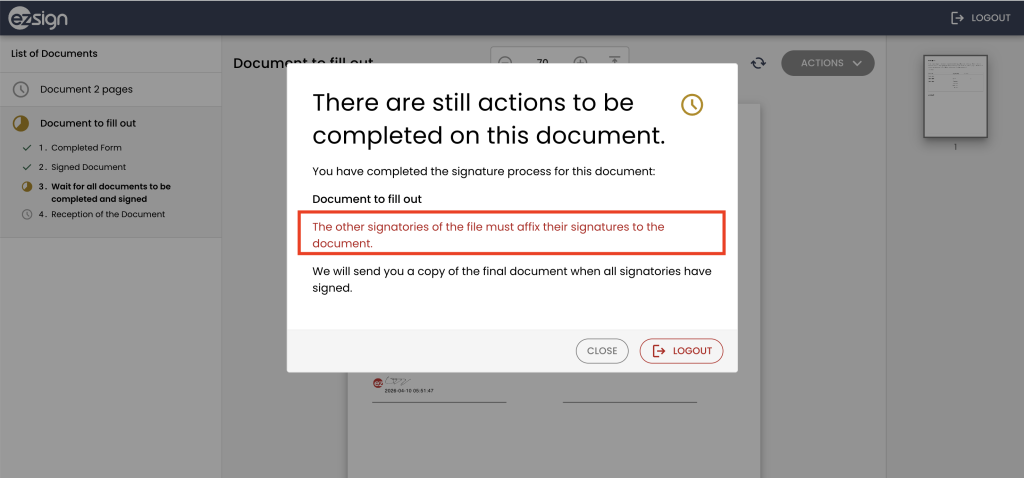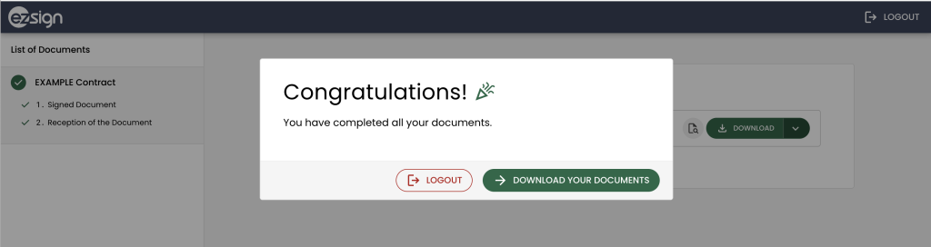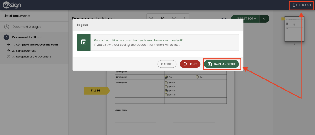 When you click “Log out” in eZsign, a pop-up offers you several options: