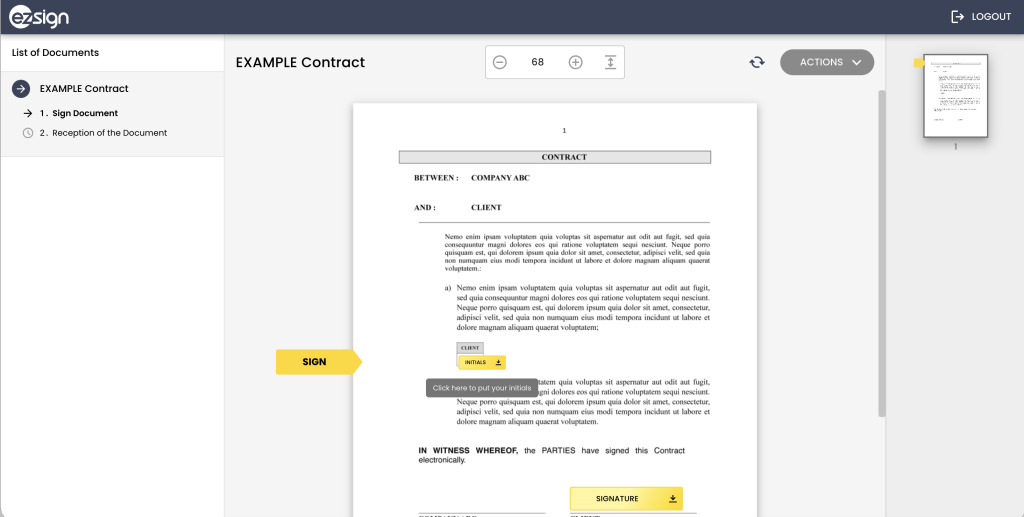 In this case, the first time you click on the signature box, you will need to draw your signature and initials using your mouse or device (touchscreen, stylus, etc.), even if only one of these is required in the document.